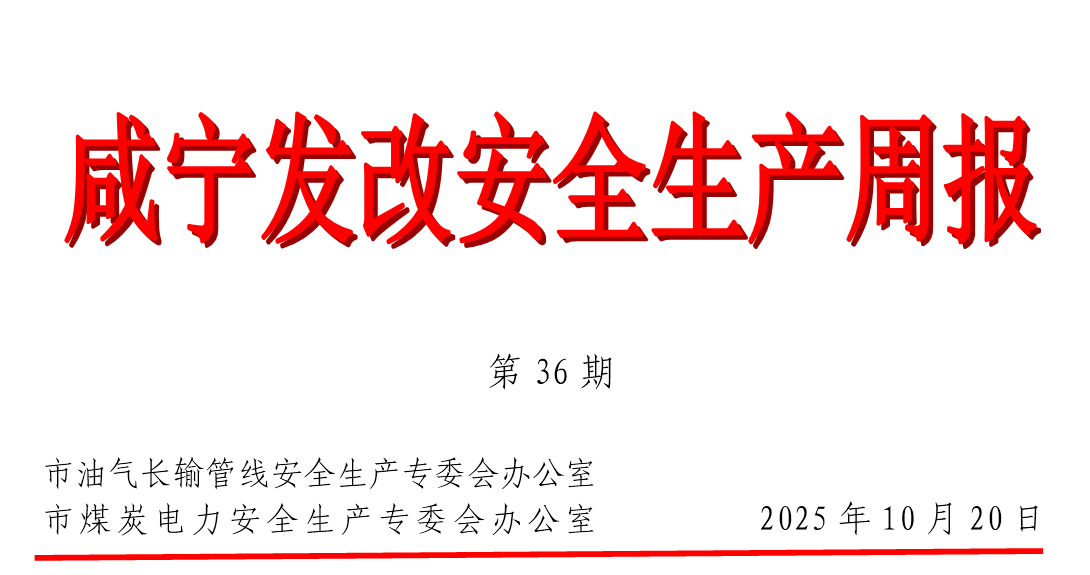 名 称: 咸宁发改安全生产周报(2025年第36期) 发布日期: 2025年10月21日
