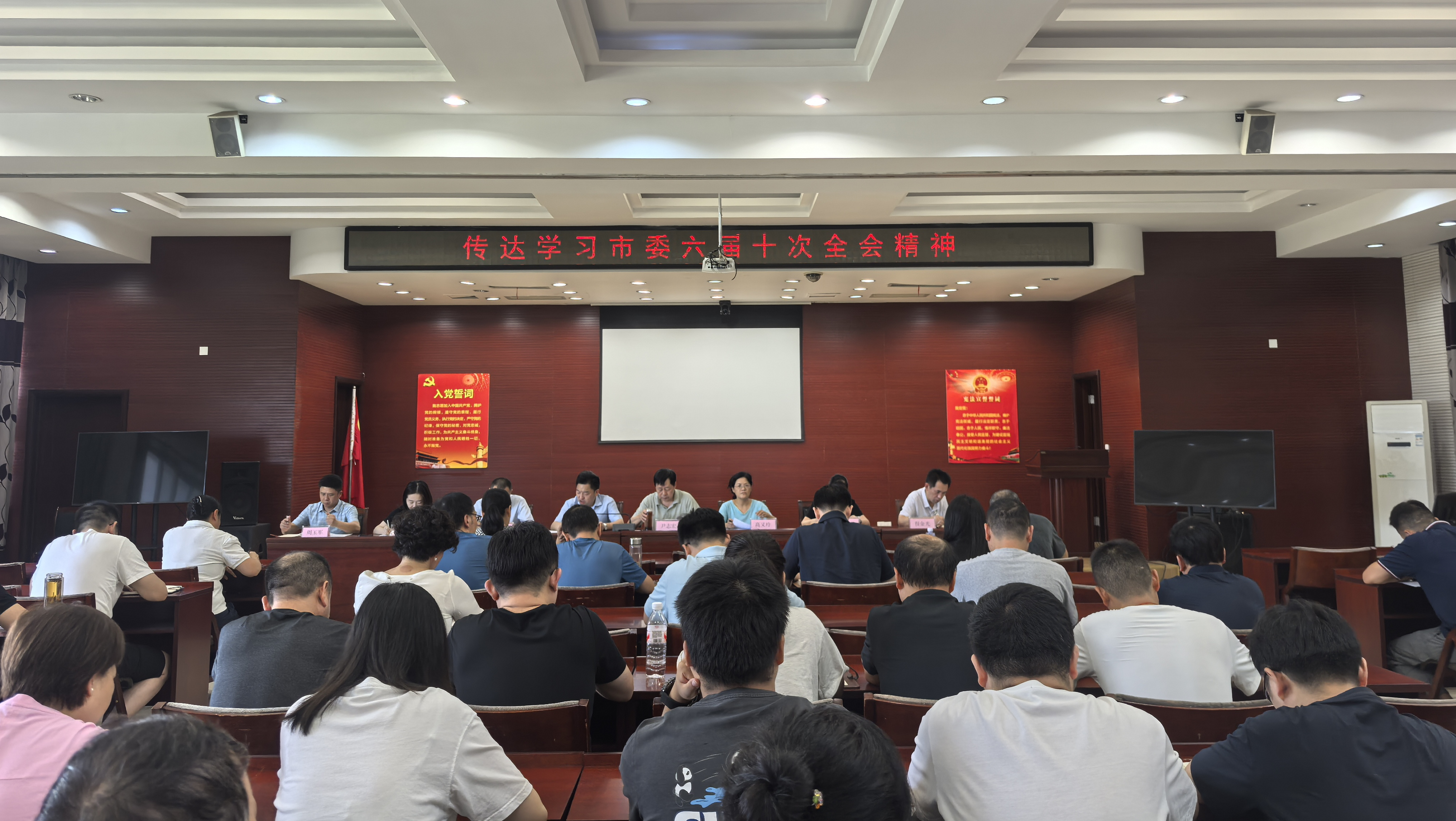 8月16日,市发改委召开全体干部职工大会,专题传达学习中共咸宁市委六届十次全体会议精神,对贯彻落实工作进行安排部署。委党组副书记、市国动办(人防办)常务副主任万龙主持会议并讲话。
